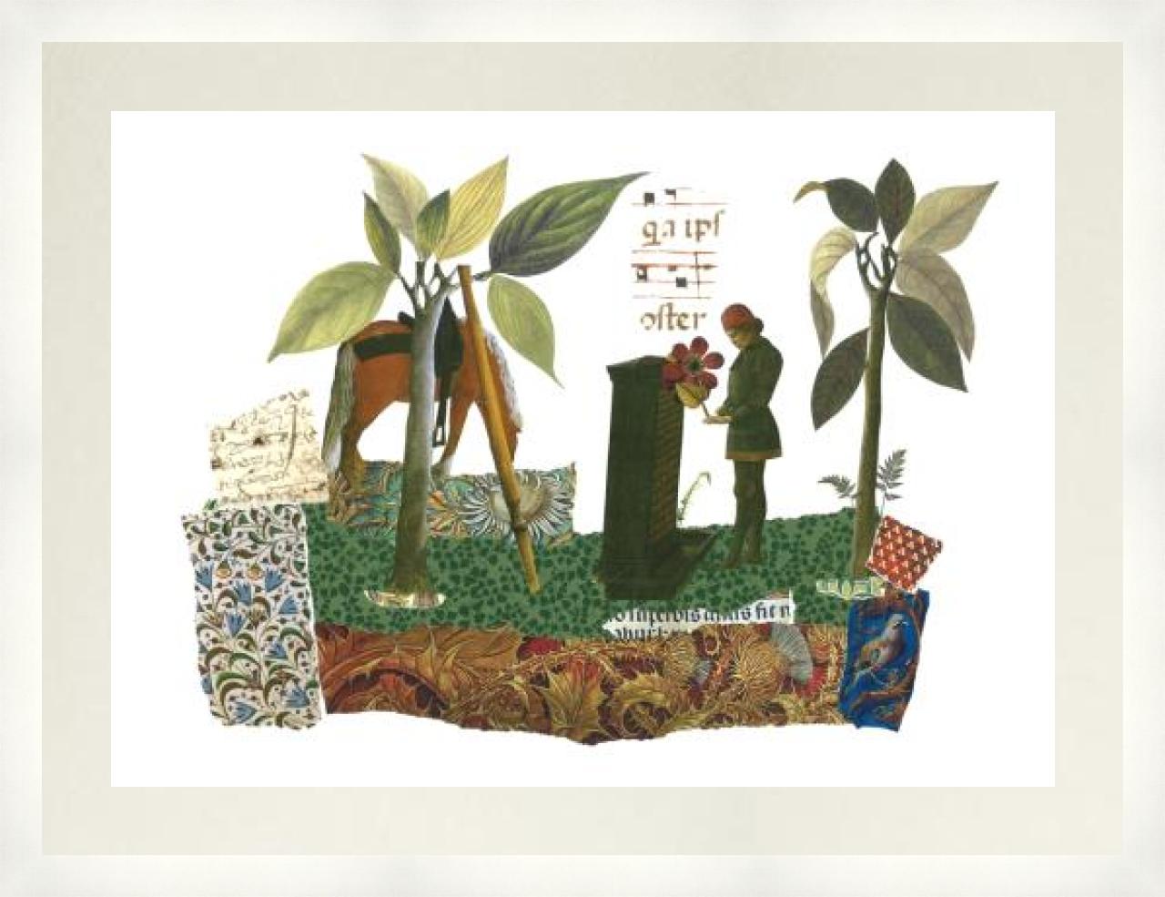 Edición abierta en lámina de papel estucado de 350 grs. Reproducción del collage original hecho con recortes de papel. Año 2026.