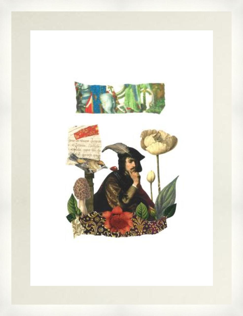Edición abierta en lámina de papel estucado de 350 grs. Reproducción del collage original hecho con recortes de papel. Año 2026.
