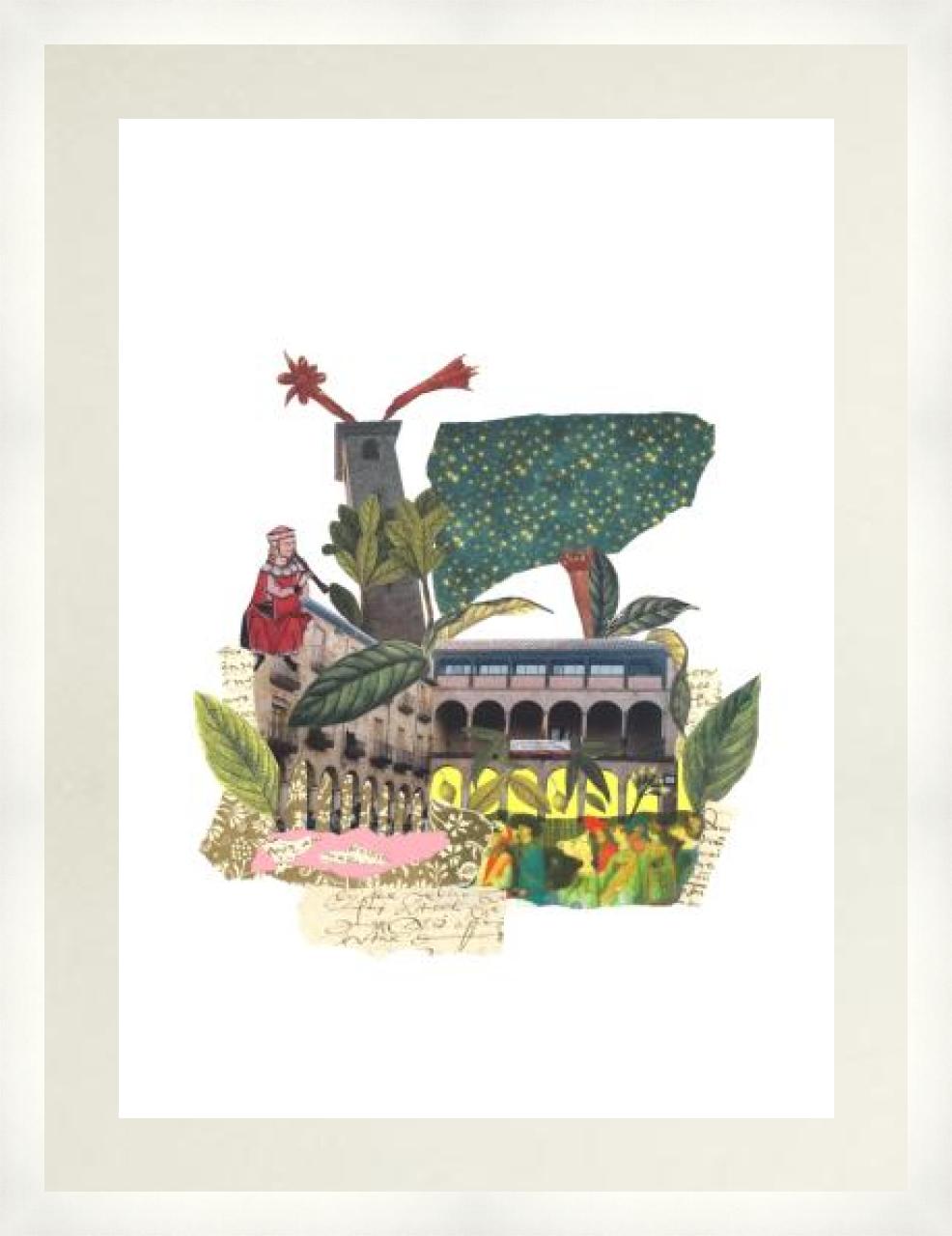 Edición abierta en lámina de papel estucado de 350 grs. Reproducción del collage original hecho con recortes de papel. Año 2024.